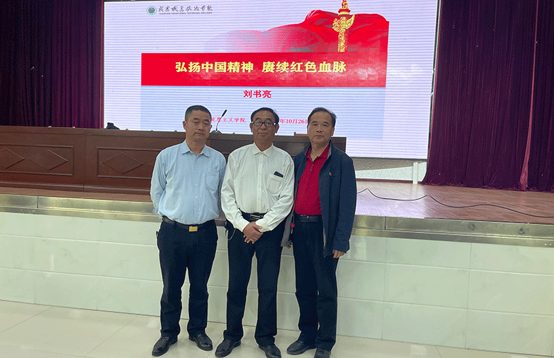 为进一步学习贯彻习近平总书记“七一”重要讲话精神,推进党史学习教育走深走实,切实提高思政课教学实效性,引导学生深刻理解《思想道德与法治》《毛泽东思想和中国特色社会主义理论体系概论》课程中关于中国共产党伟大建党精神及党的精神谱系等内容,激发学生的爱国情怀,10月26日下午,我院邀请中央组织部远程教育先进典型、全国科普恵农兴村带头人、全省优秀村党支部书记、南鄂楷模刘书亮走进思政课堂,以《弘扬中国精神 赓续红色血脉》为主题,围绕“为什么要开展红色教育”、“如何开展红色教育,传承红色基因”和“传承红色基因的三点体会”三个方面生动形象的为学生讲述鄂南红色故事。