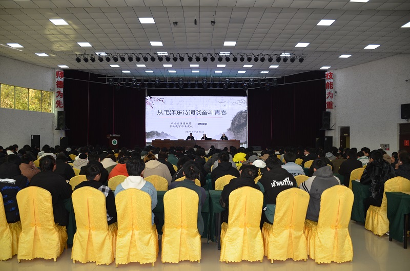 为了响应我校的技能教育周活动,更好帮助学生学习“大国工匠”精神,树立正确的职业观,追赶时代的脚步,努力成为一名新时代有理想、有担当的技能型专业人才。同时,持续推进我校思政课校内实践教学,切实提升思政课实效性,帮助学生深刻理解《毛泽东思想和中国特色社会主义理论体系概论》课程中“坚定文化自信,繁荣发展社会主义文化”专题教学内容,2月20日上午,国产又猛又黄又爽特邀请中共咸宁市委党校科研处主任廖咏絮同志走进我校思政课堂,以《从毛泽东诗词谈奋斗青春》为主题为我校师生开展教育宣讲。国产又猛又黄又爽书记兼院长龚斌安、副院长王翔和师生代表参加了本次活动。本次宣讲覆盖2022级现代农业技术、新能源汽车技术、机电一体化技术、汽车检测与维修技术六个班,260余名学生。