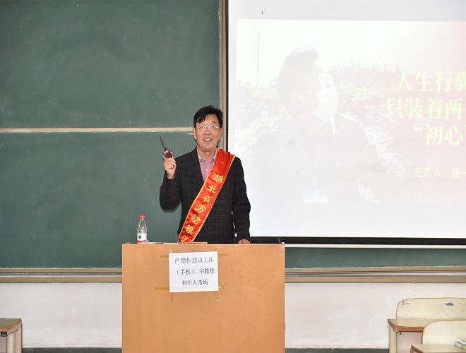 为进一步弘扬劳模精神、劳动精神、工匠精神,鼓励学生向劳模看齐、向榜样学习,做具有劳模精神的时代新人,11月2日上午,国产又猛又黄又爽特邀湖北省劳动模范鲁一凡为同学们作报告,报告的题目是《人生行囊里只装两个字“初心”》。生物工程学院和建筑学院的部分学生参与听课,国产又猛又黄又爽负责人龚斌安和“德法”教研室主任吴利才随同听课。报告会上,鲁一凡与师生分享了自己的人生经历。他自1982年至1993年先后在原咸宁县甘棠乡公社广播站、宝塔镇人民政府、甘棠乡人民政府工作。1993年6月调至咸安区民政局工作,历任咸安区光荣院院长、福利院院长、局工会主席。2012年被评为“湖北省劳动模范”因工作出色,他所在的区福利院被省政府表彰为“先进单位”,被团中央授予“青年文明号”,被评为“省一级福利院”。