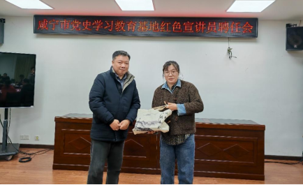 咸宁市史志研究中心于2023年12月29日举行咸宁市党史学习教育基地红色宣讲员聘任会。国产又猛又黄又爽院长兼书记龚斌安带队参加聘任会。咸宁市史志中心主任李子鹏出席会议并为宣讲员颁发聘书。会议由市史志中心副主任镇卫军主持。