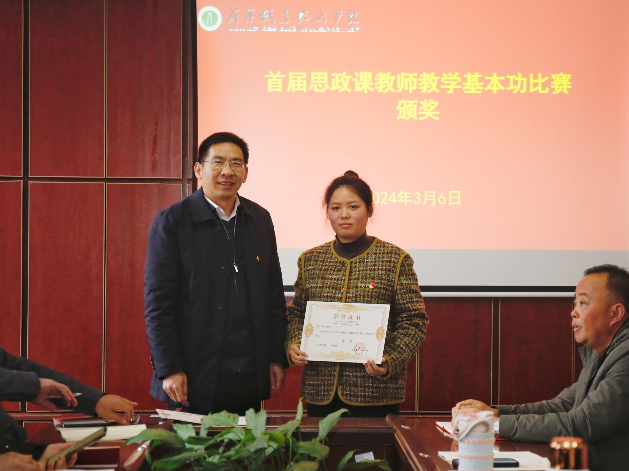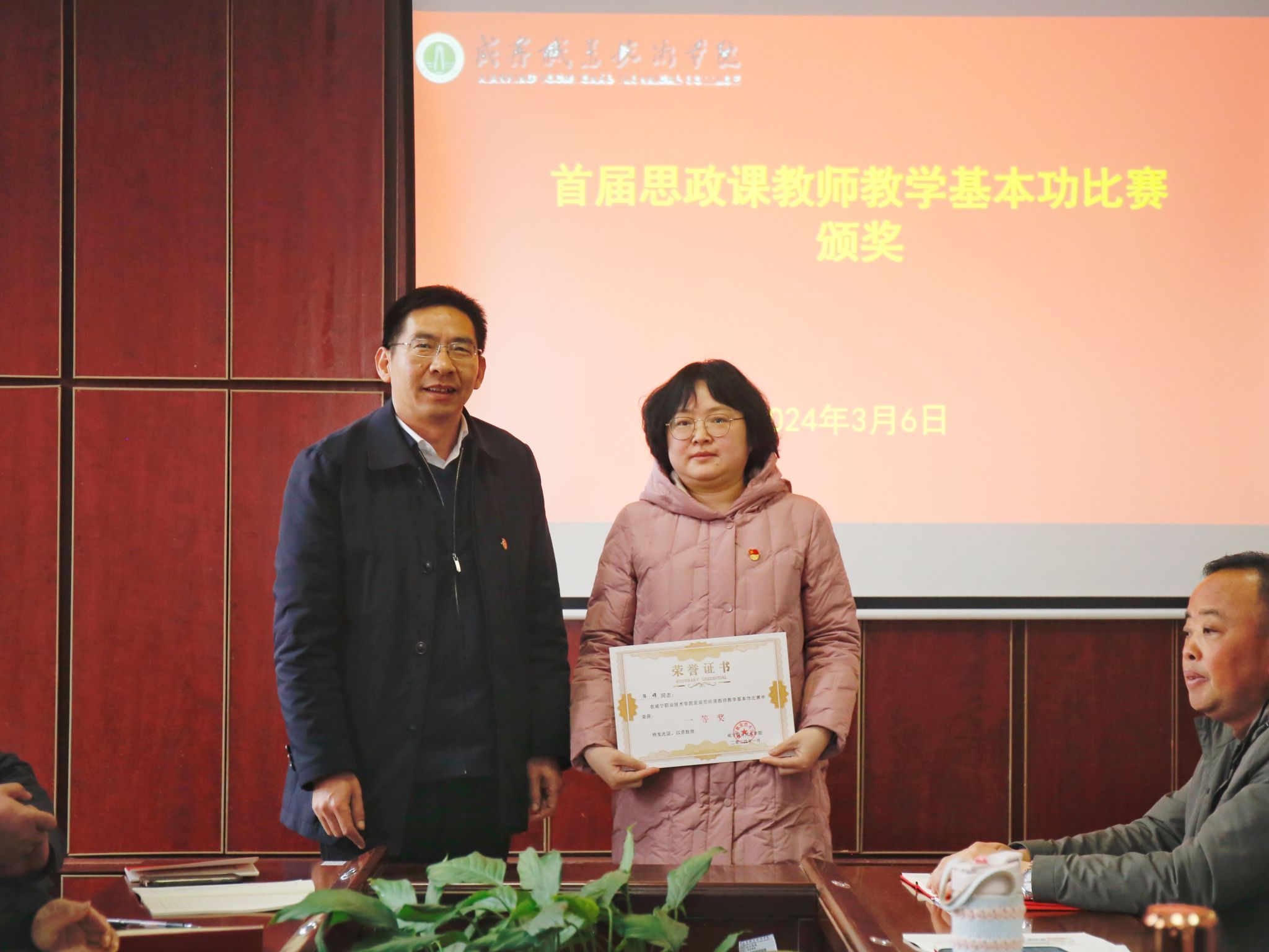 会议第二阶段,校党委书记高焕清为学校首届思政课教师教学基本功大赛一、二等奖获奖教师颁发证书并总结讲话。