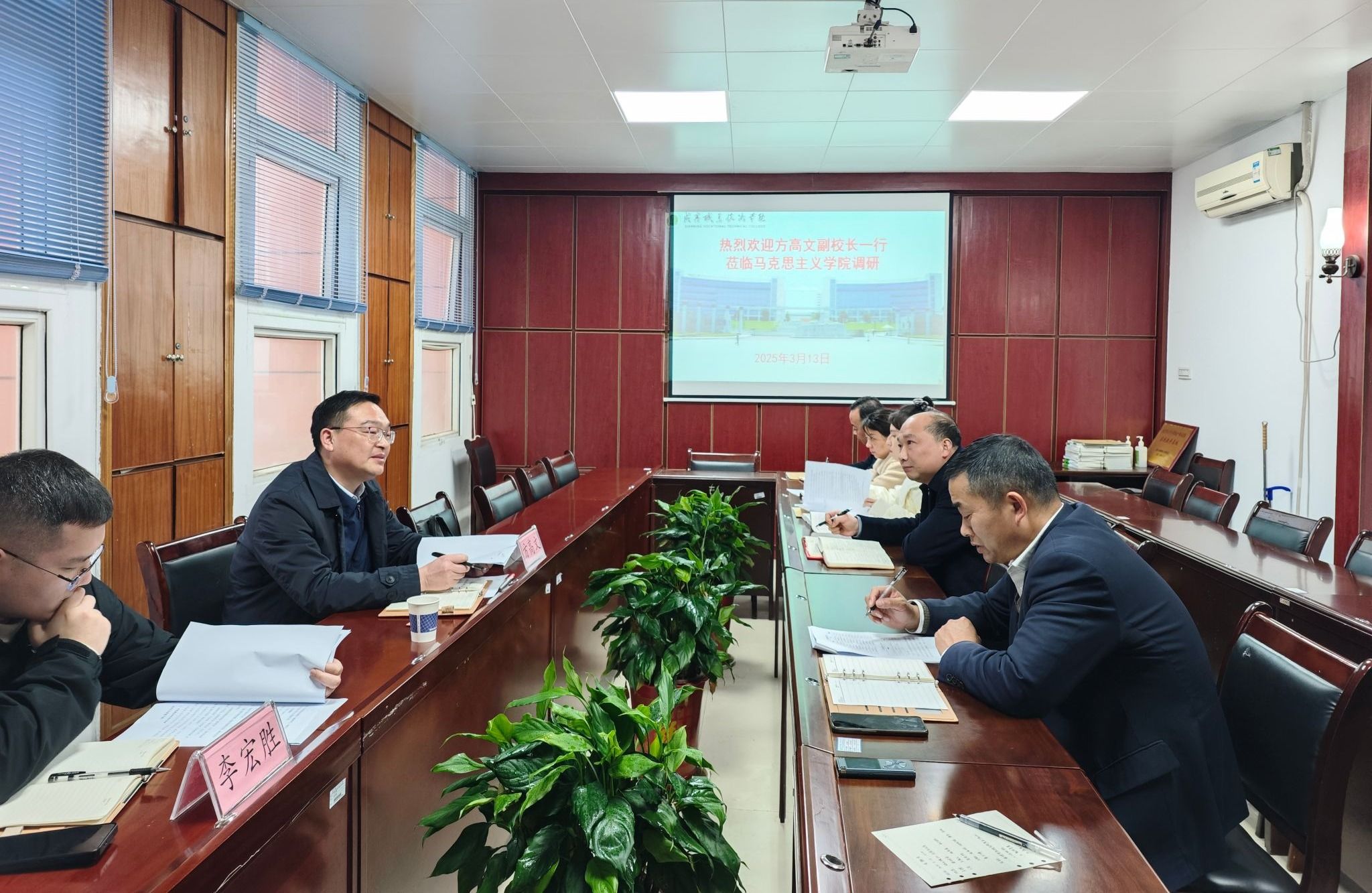 方高文副校长对马院工作给予了肯定。方校长强调一要坚持马院姓“马”。必须始终坚持马克思主义的指导地位,这是学院的根本和灵魂;二要上好一堂课。课堂教学是思政教育的核心环节。要致力于提高思政课的教学质量,不断创新教学方法,增强课程的吸引力和感染力,使思政课更加贴近学生实际,激发学生的学习兴趣和参与热情;三要加强实践教学基地建设。实践教学是思政教育不可或缺的一部分,马院要加强与社会各界的合作,为学生提供更多实地学习的机会,做强“文化研学 行走课堂”品牌,增强社会责任感和实践能力,做到知行合一;四要坚持党建引领。马院要通过党建工作,提升学院的整体凝聚力和战斗力,为培养德智体美劳全面发展的社会主义建设者和接班人提供坚强的政治保证。